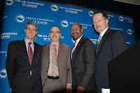 And of course, there was Philadelphia Mayor Michael Nutter (my boss) speaking passionately about the fact that "great cities support great art," that the arts are not only critical to our economy, and to tourism, but also to education, to neighborhood revitalization and livability. He acknowledged the tough economy has made it hard to provide the significantly increased cultural support he had planned to implement, but vowed to stay the course, to see cultural investment as economic investment in our City, and do all he can to move towards restoration of any cuts as economic realities improve. We did have a little Philadelphia/Pennsylvania posse in the house: in addition to me, and Desiree Peterkin-Bell and Tumar Alexander from the Mayor's staff, we also had Tom Kaiden, CEO of the Greater Philadelphia Cultural Alliance and Mich Swain, CEO of the Pittsburgh Arts Council and Chairman of Citizens for the Arts in Pennsylvania. His award was presented by National Endowment for the Arts Chairman Rocco Landesman, who commented how Philadelphia was a model for the rest of the country in demonstrating the role the arts can play in revitalizing communities. He cited projects like the Crane Arts Building and Mural Arts, as well as the City's CDBG-R-funded creative economy workforce grants. He also cited the Mayor's re-opening of its arts and culture office and making its leadership cabinet level, and cited the Mayor as "one of my heroes". He encouraged everyone in the room to get on Amtrak and come visit! (Check out his account of the event on his blog which is linked above.)